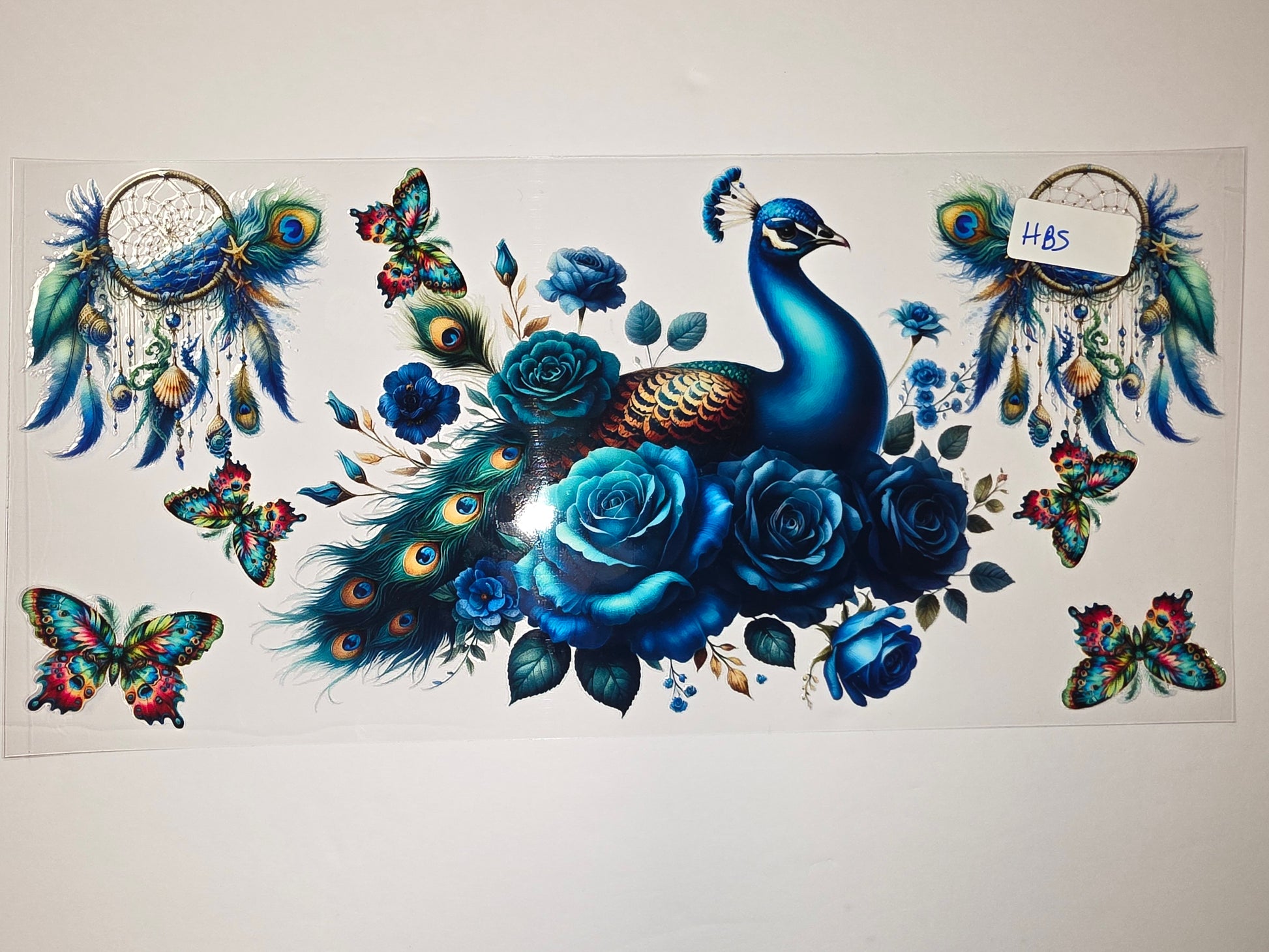 Bohemian Peacock & Blue Rose Tumbler Wrap | Dreamcatcher Butterfly Design