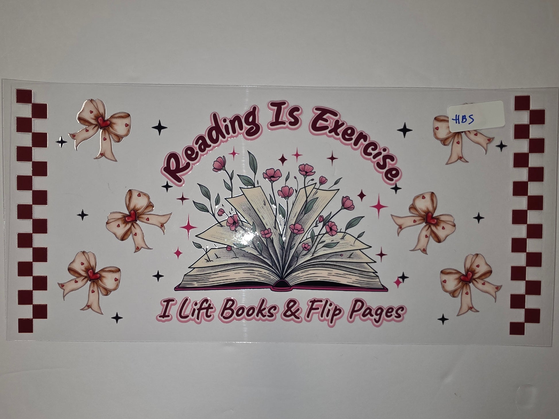 Book Lover Tumbler Wrap - Reading Is Exercise Design with Bows & Flowers