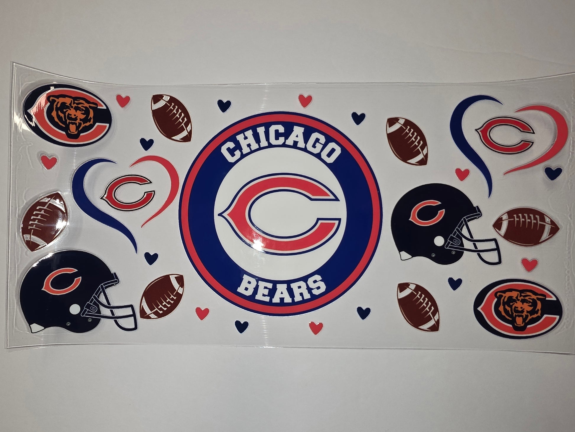 Show your team spirit with this vibrant Chicago Bears tumbler wrap! Featuring the iconic team logo, helmets, and footballs, this design is perfect for any NFL fan. Easily apply it to your favorite cup or drinkware for a personalized touch.