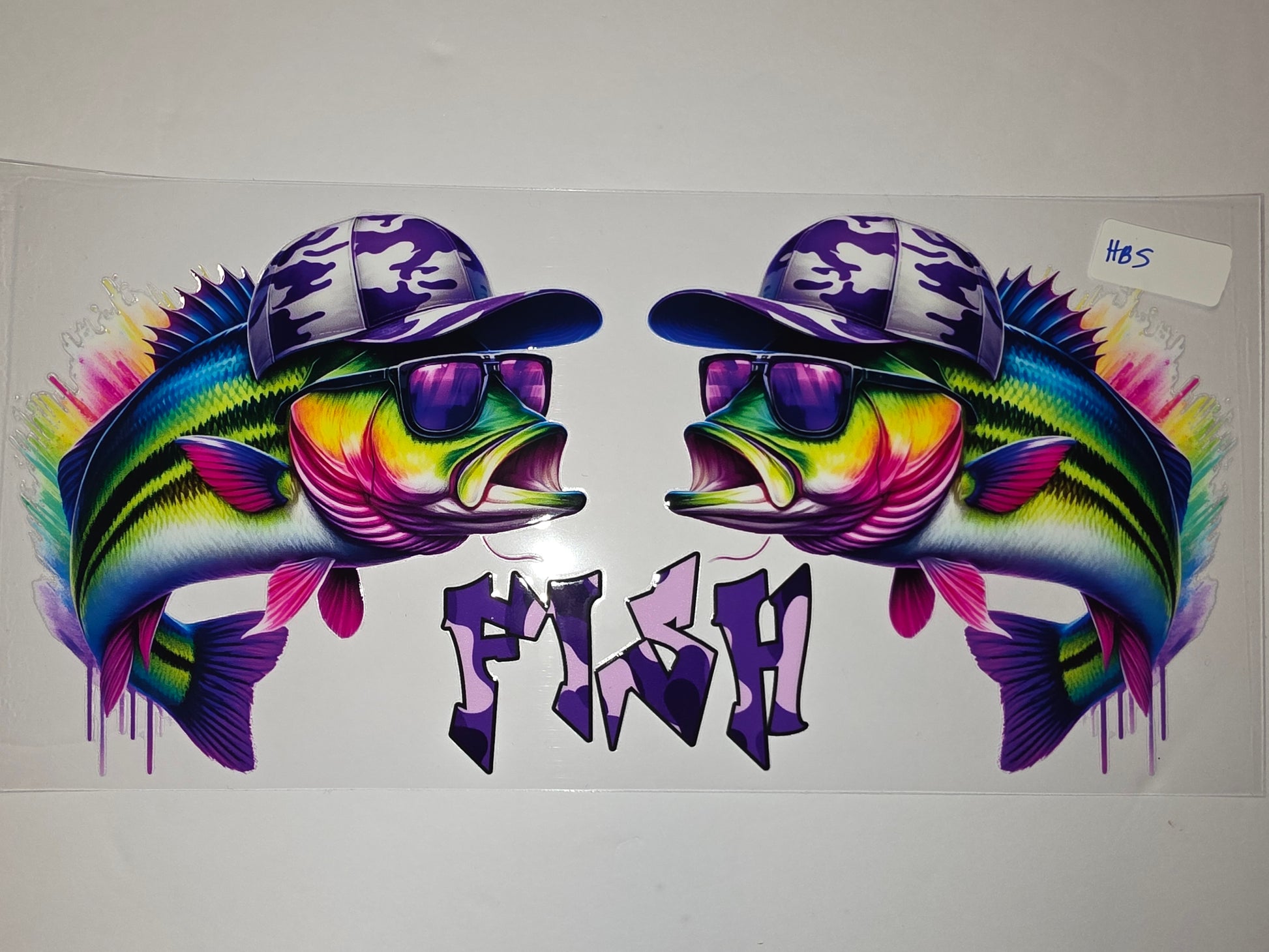 Cool Fish Tumbler Wrap - Camo Hat & Sunglasses Design - Vibrant Rainbow Colors