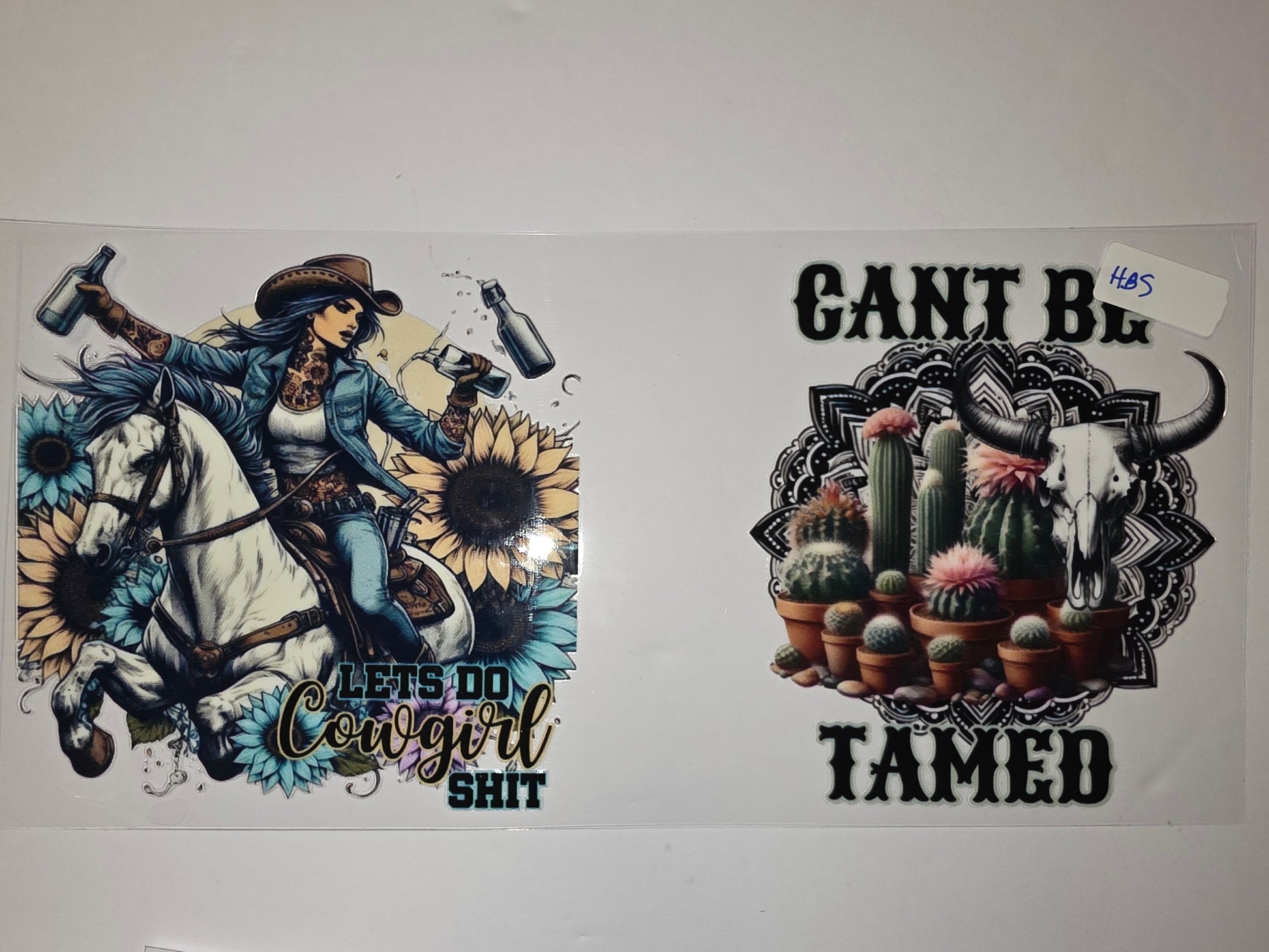 Embrace your wild side with these unique tumbler wraps! Featuring a fierce cowgirl on horseback with sunflowers and a striking cactus skull design with desert flora. Perfect for adding a touch of western boho flair to your drinkware.
