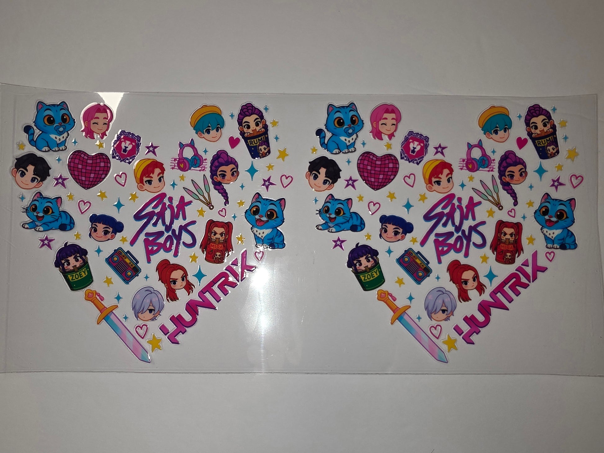 Add a touch of kawaii charm to your drinkware with this vibrant tumbler wrap featuring adorable anime characters, playful cats, and bright pink and blue accents. Perfect for personalizing your water bottle, coffee cup, or any smooth surface for a fun, unique look.