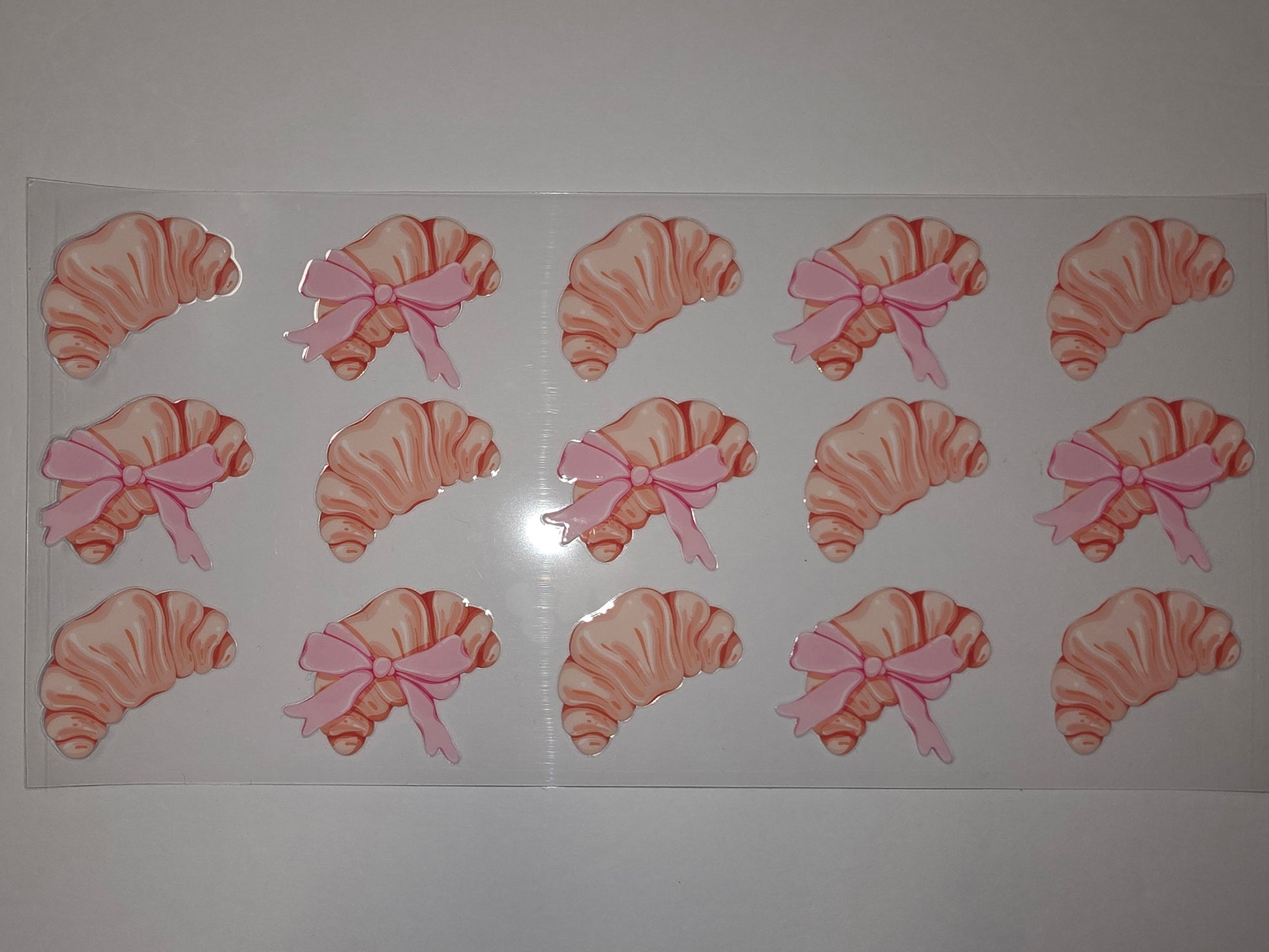 Add a touch of Parisian charm to your day with this adorable croissant tumbler wrap featuring sweet pink bows. Perfect for coffee lovers, bakers, or anyone who enjoys a whimsical touch on their drinkware.