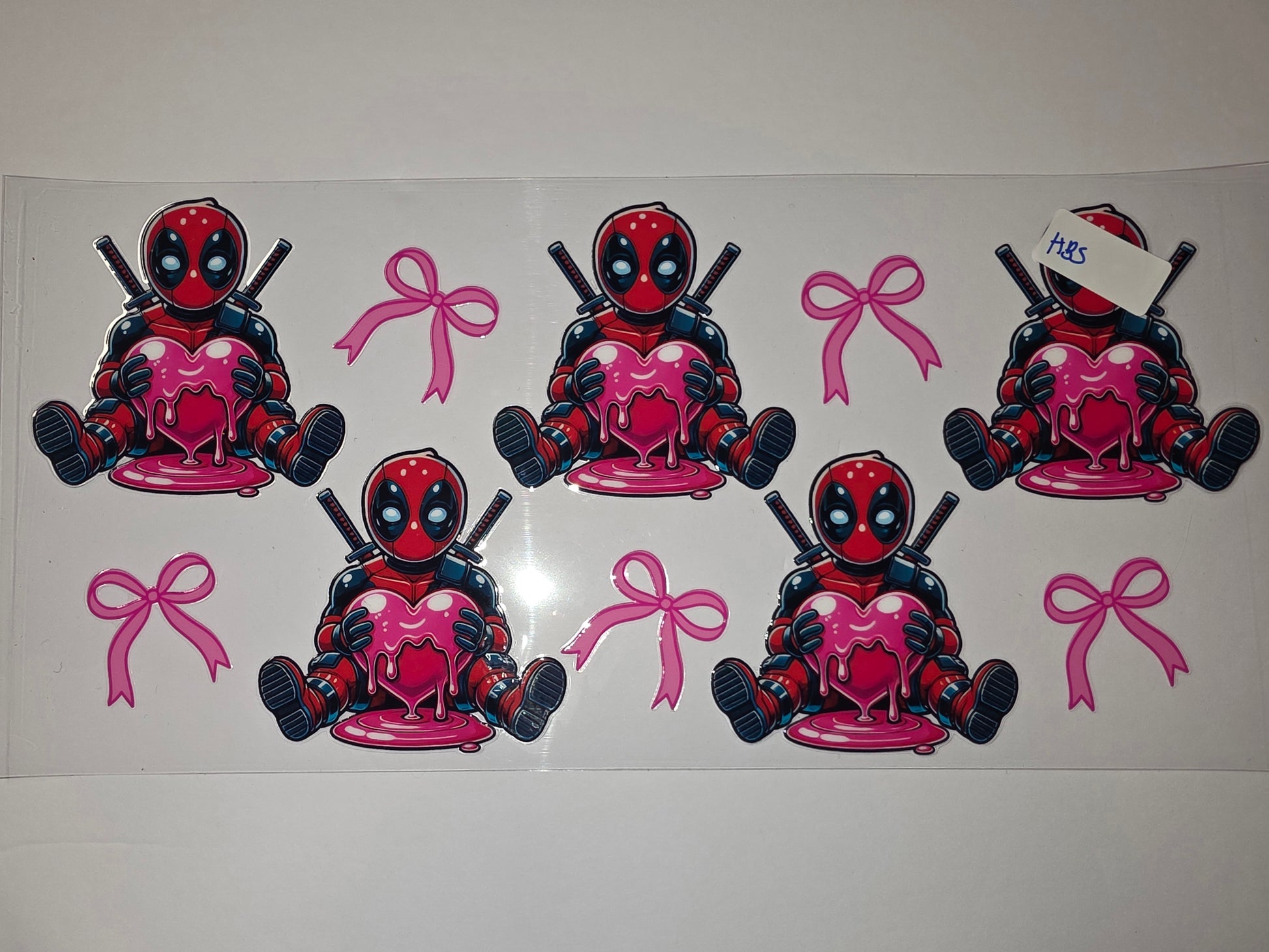 Add a touch of playful charm to your drinkware with this adorable Deadpool tumbler wrap. Featuring the iconic character cradling a dripping pink heart, this design is perfect for fans and adds a fun, vibrant pop to any cup.