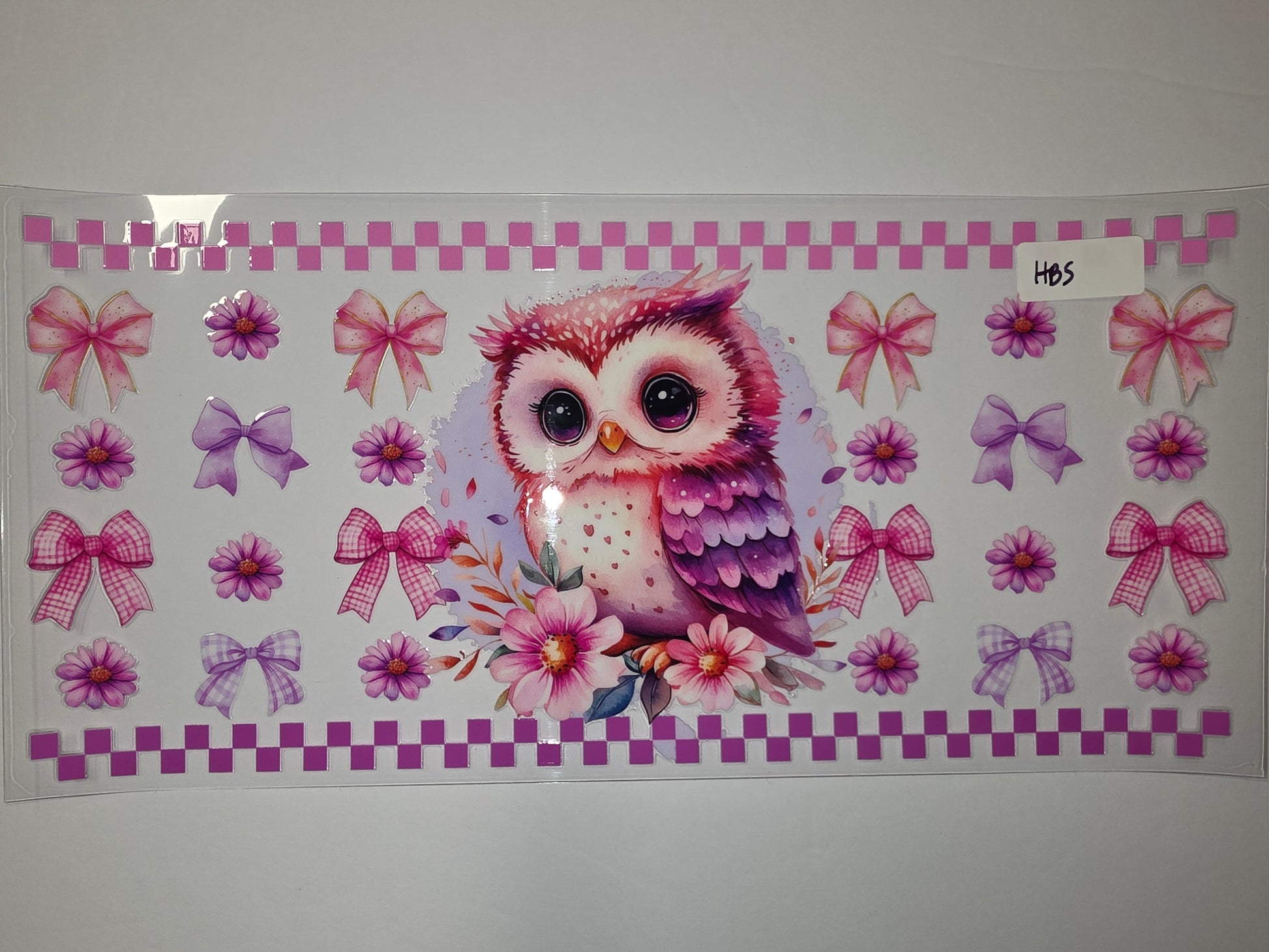 Cute Watercolor Owl & Flowers Tumbler Wrap | Pink Purple Bows & Daisies | Sublimation Design