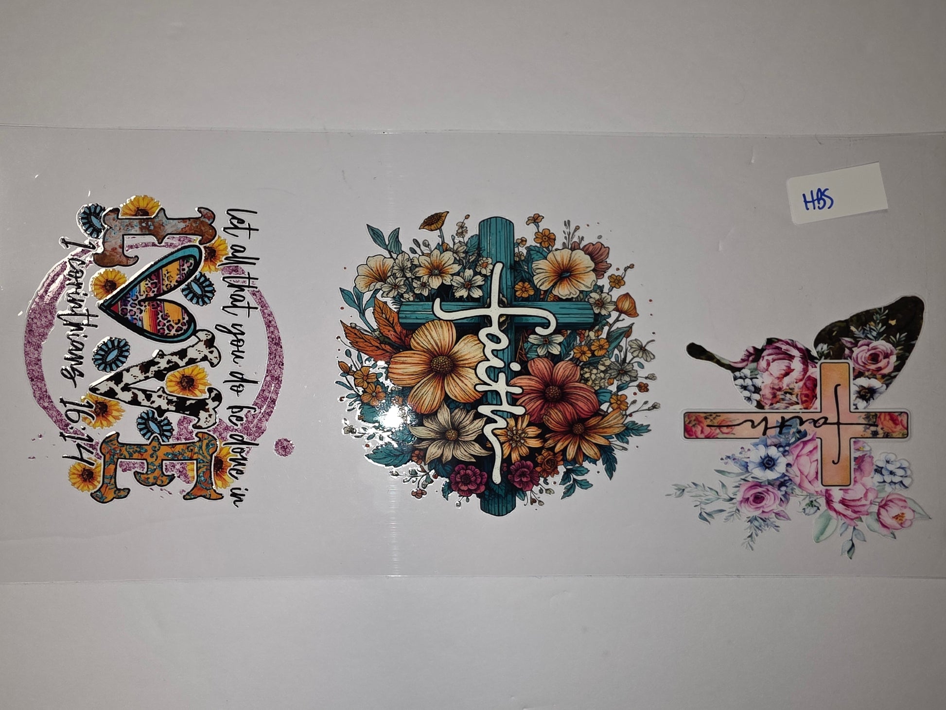 Add a touch of faith and rustic charm to your drinkware with these vibrant tumbler wraps. Featuring inspirational crosses, blooming sunflowers, a western-inspired "Love" design, and a delicate floral butterfly, these wraps are perfect for personalizing cups and gifts.