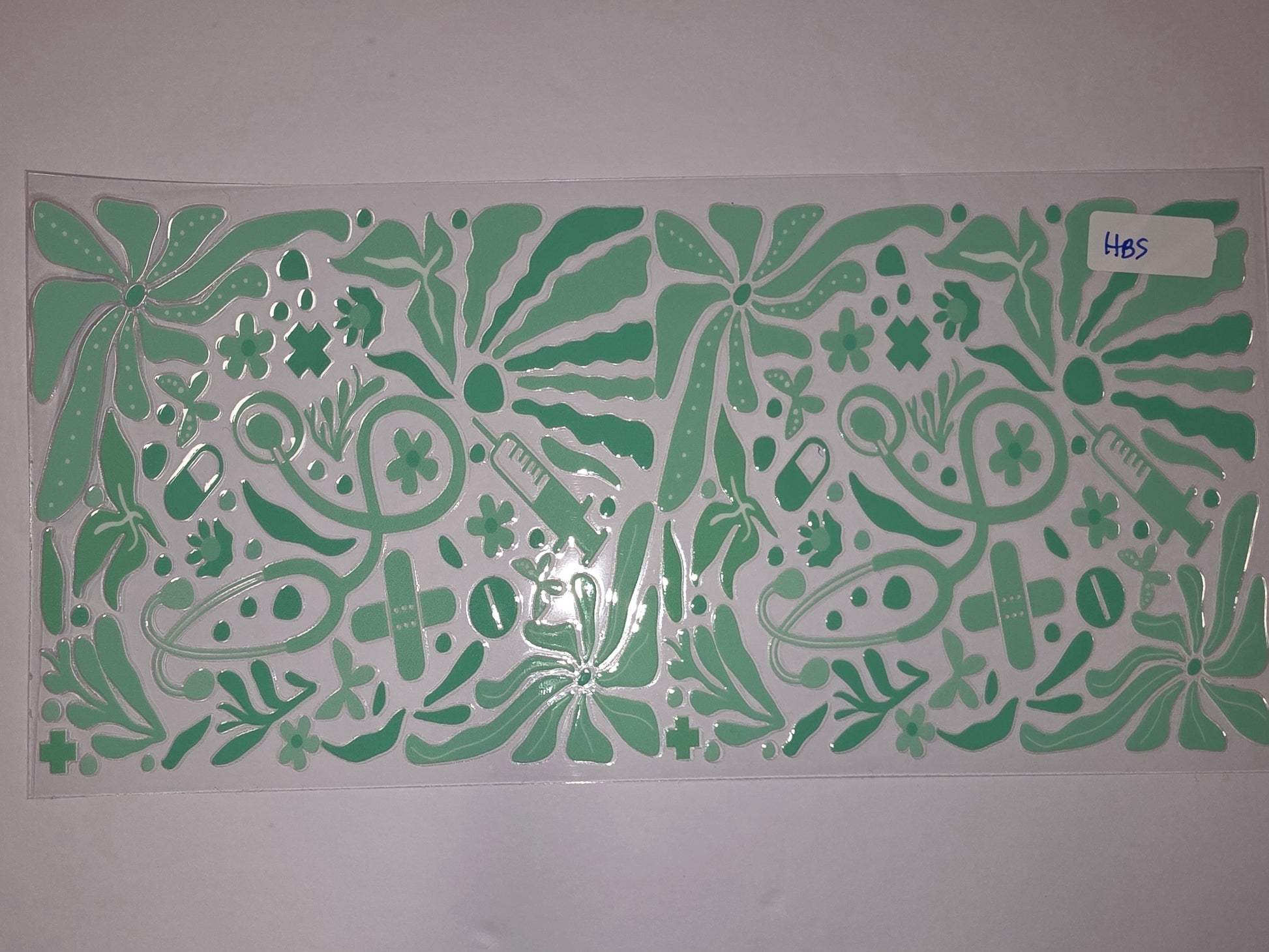 Adorn your drinkware with this charming mint green tumbler wrap featuring a delightful mix of medical icons and floral elements. Perfect for nurses, doctors, or anyone in healthcare who loves a touch of botanical beauty.