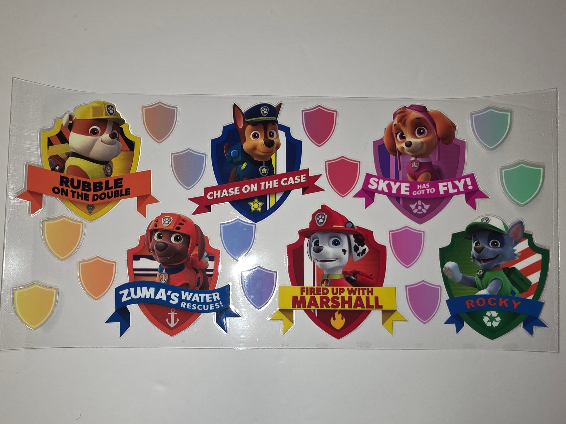 Bring the Paw Patrol to your favorite drinkware with this vibrant tumbler wrap featuring Rubble, Chase, Skye, Zuma, Marshall, and Rocky. Perfect for kids' parties or everyday fun, these colorful designs will make any cup a rescue mission adventure.