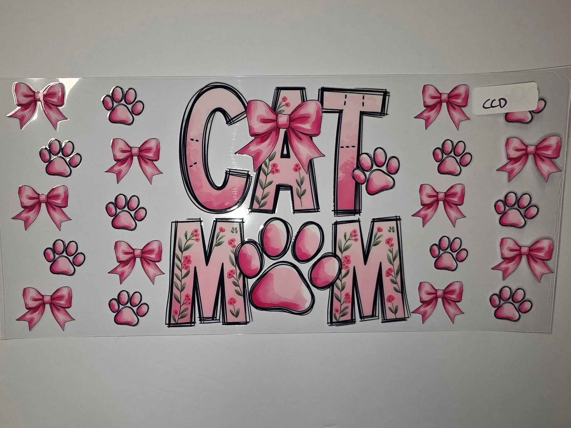 Show your love for your feline friends with this adorable "Cat Mom" tumbler wrap. Featuring a sweet pink floral design, playful paw prints, and charming bows, it's perfect for personalizing your favorite drinkware.