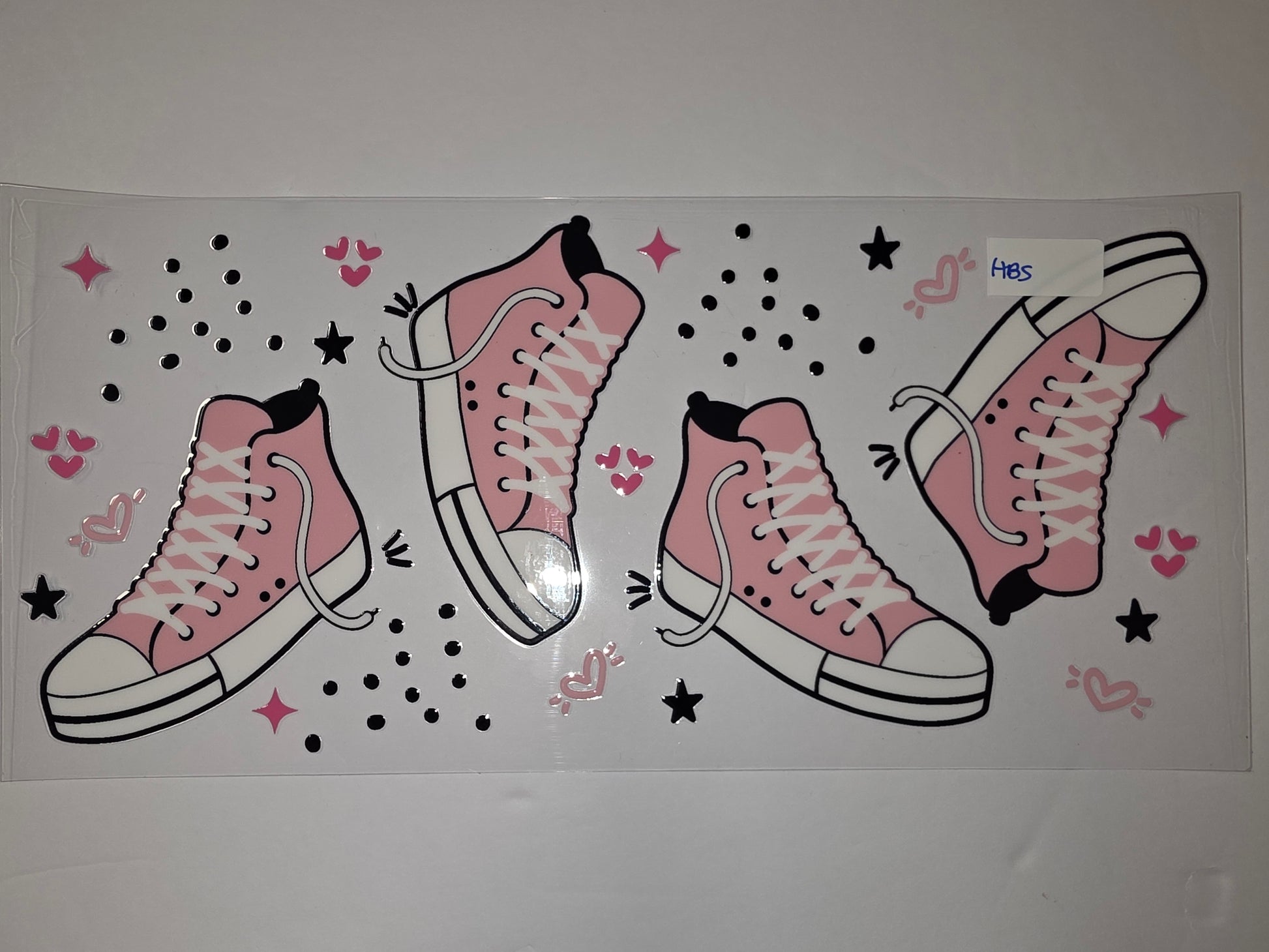 Pink High-Top Sneaker Tumbler Wrap | Cute Kawaii Drinkware Decal | Hearts & Stars Design