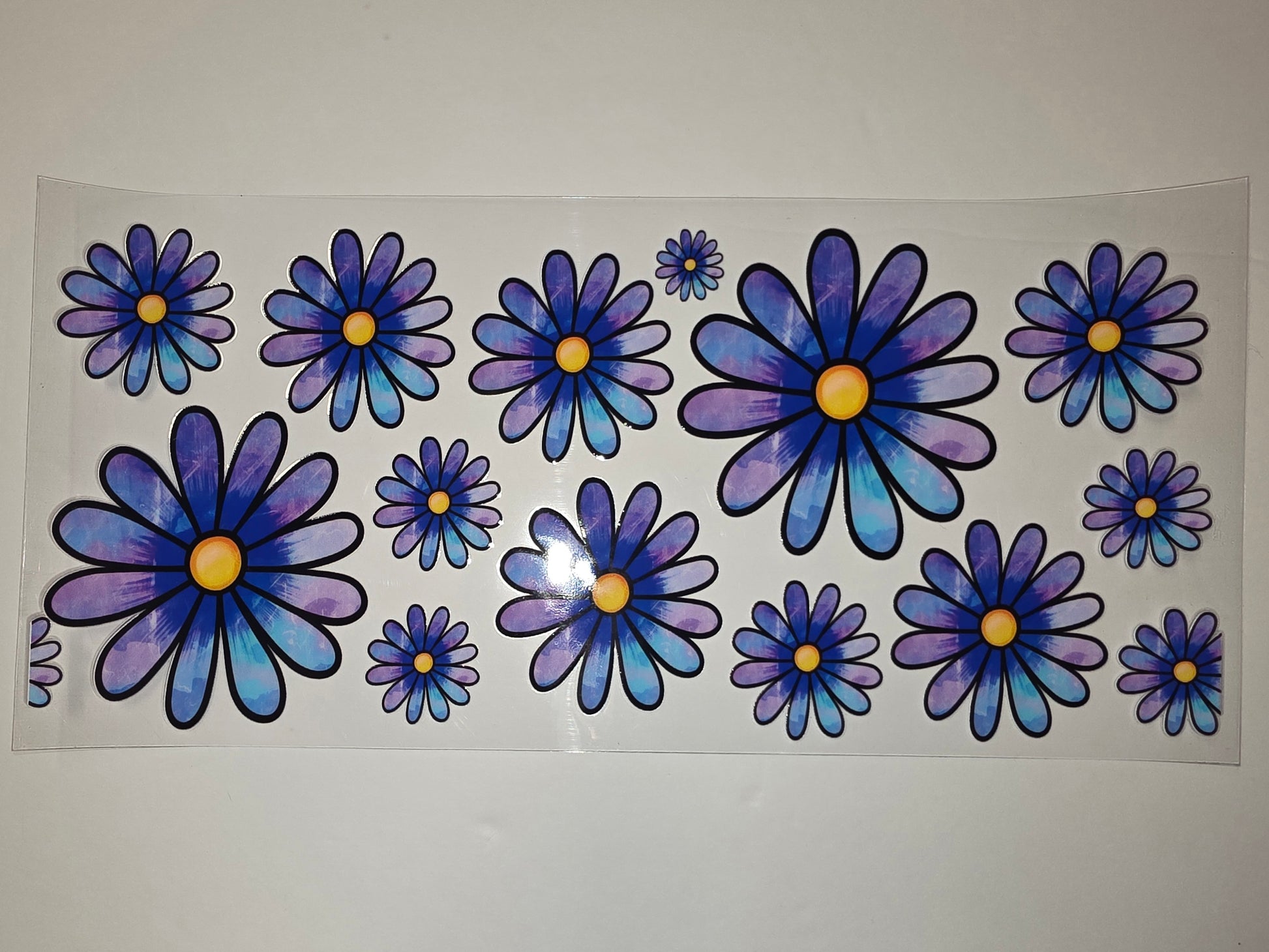 Purple & Blue Watercolor Daisy Tumbler Wrap | Flower Drinkware Decal | Vibrant Floral Design