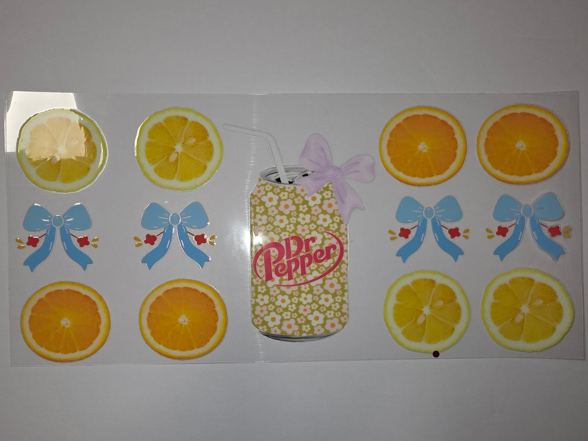 Retro Citrus & Floral Dr Pepper Tumbler Wrap | Lemon Orange Bow Design