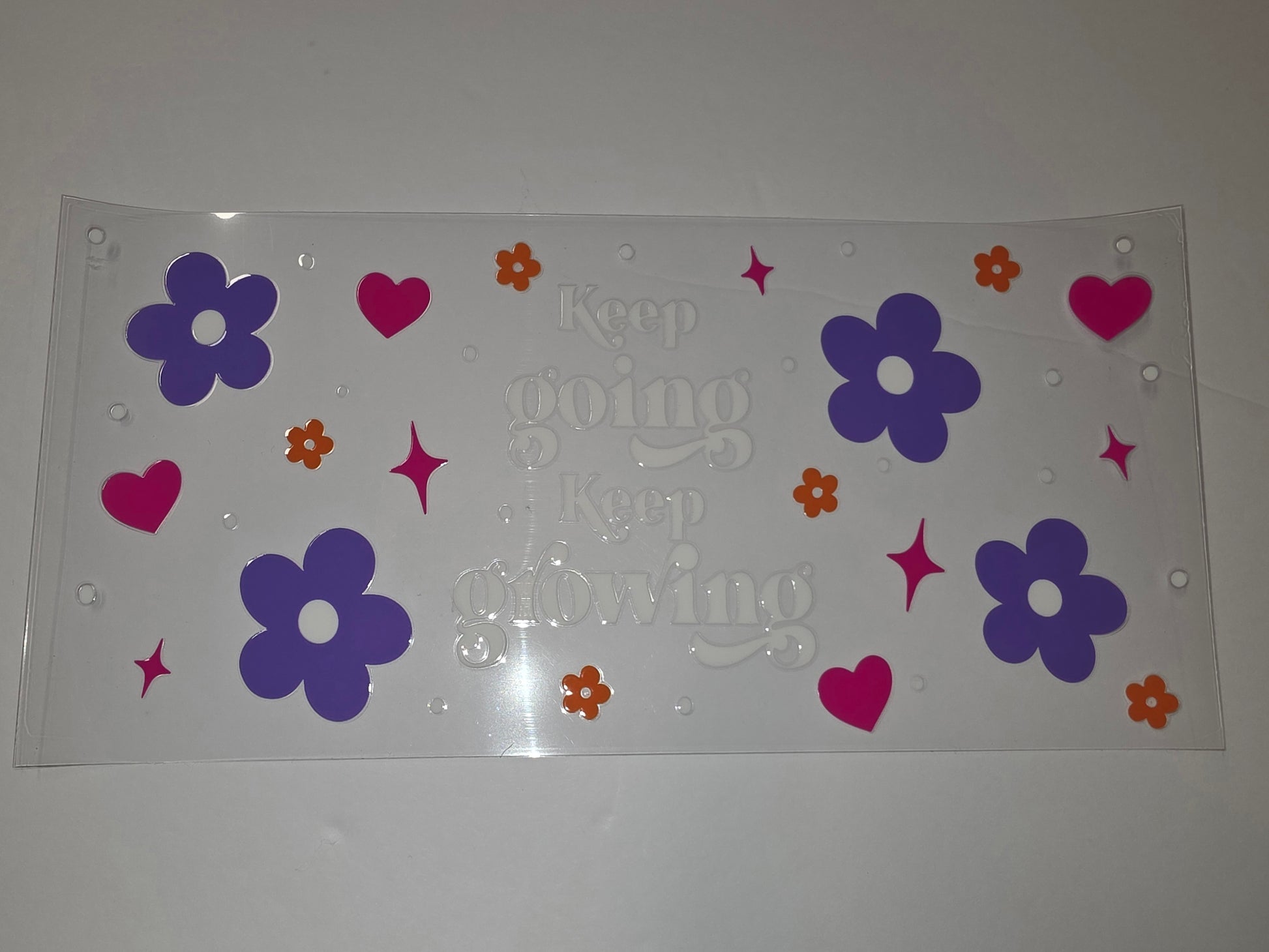 Retro Flower & Heart Tumbler Wrap | Keep Going Keep Growing | Purple, Pink, Orange