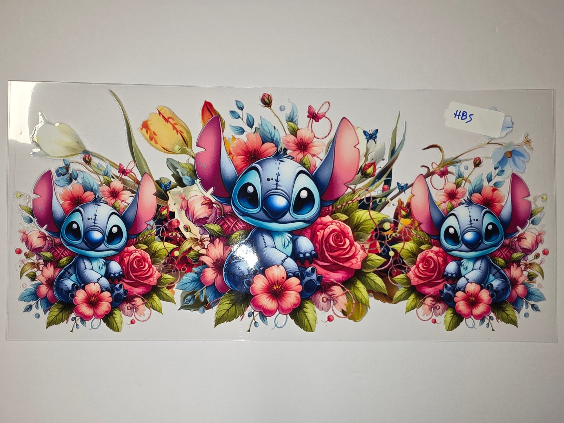 Add a touch of whimsical charm to your drinkware with this adorable Stitch tumbler wrap. Featuring the beloved blue alien surrounded by a vibrant bouquet of pink and red flowers, this design is perfect for fans of all ages. Ideal for customizing tumblers, cups, and water bottles for a unique and personal touch.