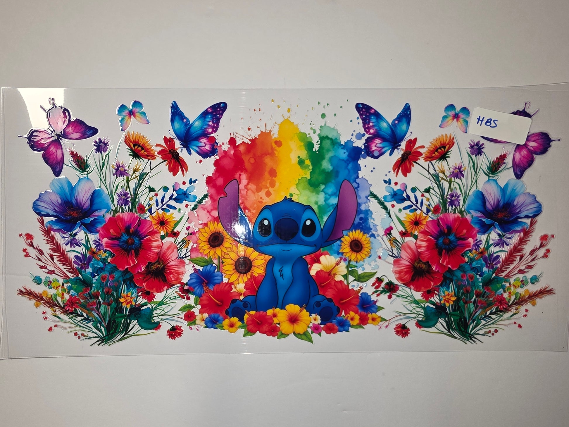 Stitch Rainbow Floral Butterfly Tumbler Wrap | Vibrant Flowers & Cute Character Design