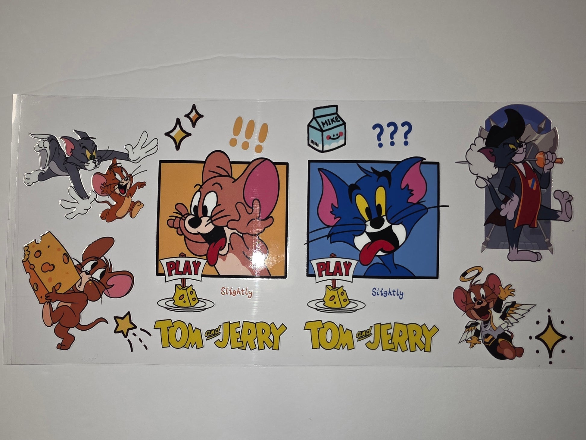 Bring classic cartoon fun to your drinkware with this vibrant Tom and Jerry tumbler wrap. Featuring iconic scenes and characters, it's perfect for adding a playful touch to your daily routine or for gifting to any fan.