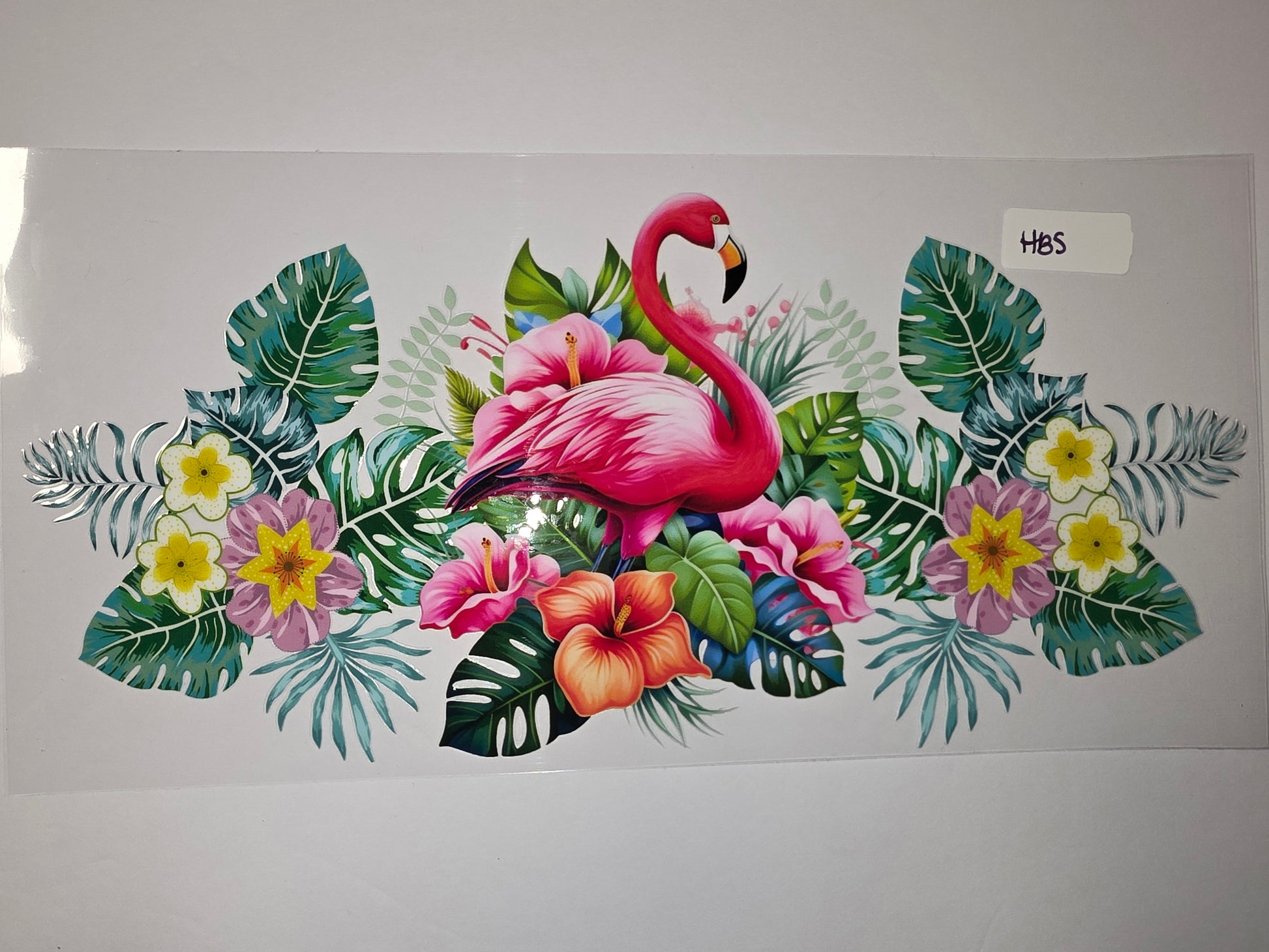 Add a touch of paradise to your drinkware with this stunning tumbler wrap featuring a vibrant pink flamingo surrounded by lush tropical foliage and colorful hibiscus flowers. Perfect for adding a fun, exotic flair to your daily hydration.