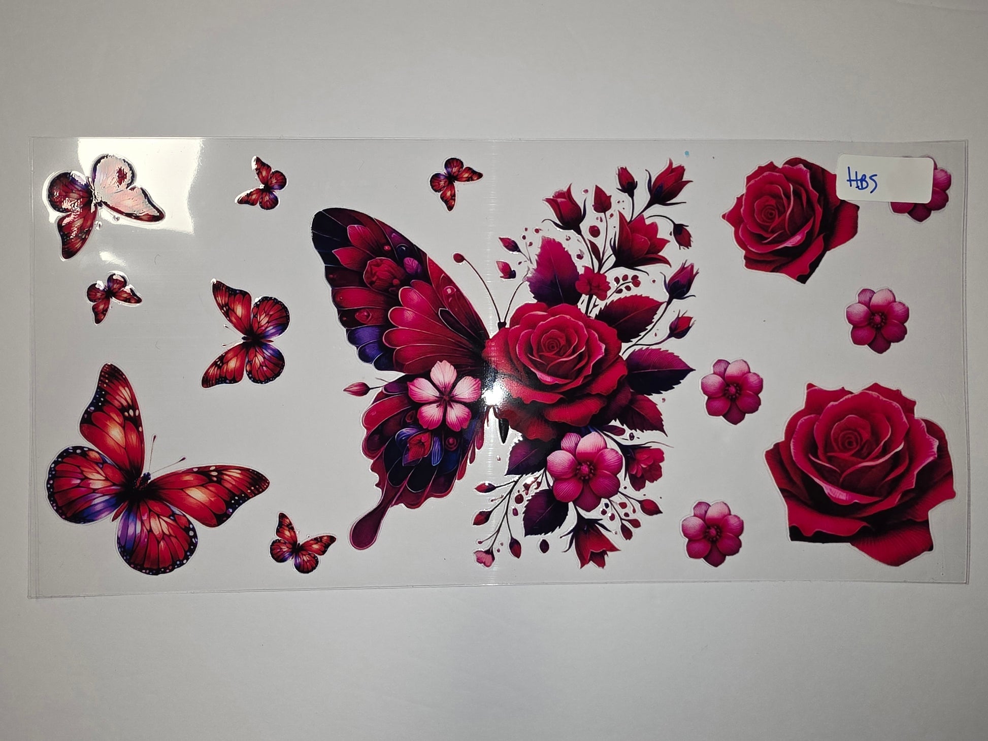 Add a touch of elegance to your drinkware with this stunning wrap featuring vibrant red butterflies and deep red roses. Perfect for customizing tumblers, cups, and water bottles for a beautiful, floral aesthetic.